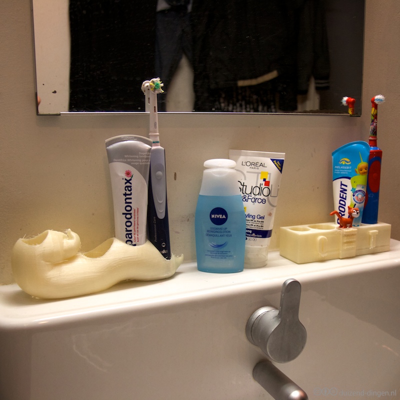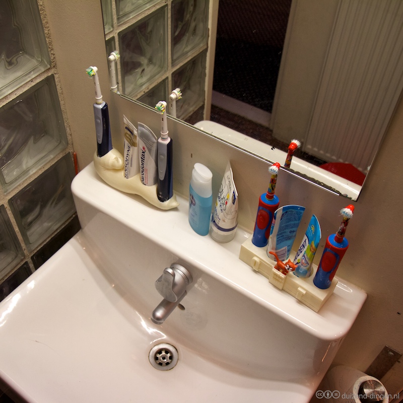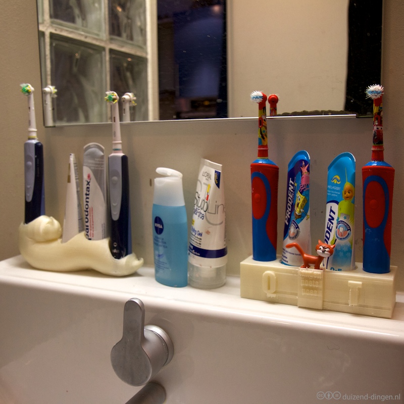 Een tandenborstel houder voor de kinderen . Met plek voor de tanden-poets-poes.